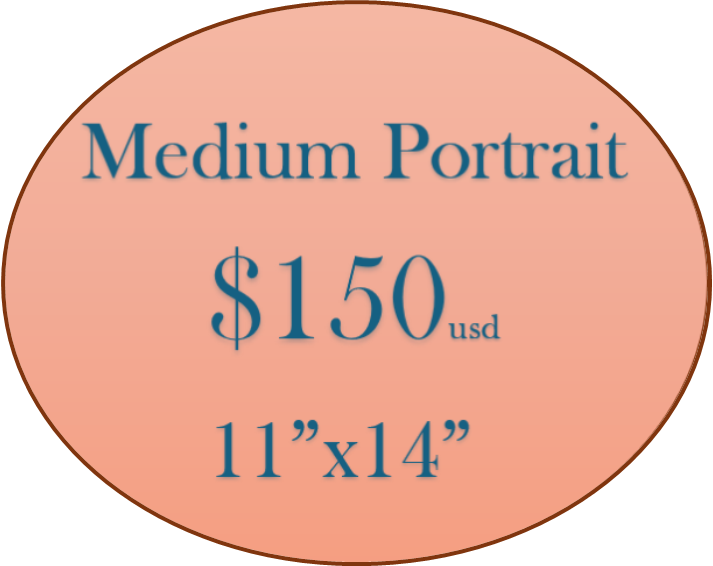 The sizes above represent the paper size that your portrait or artwork will be drawn on. Your image will fit nicely inside those dimensions. I typically leave about 1-1.5 inches around the subject so that matting and framing is easier.